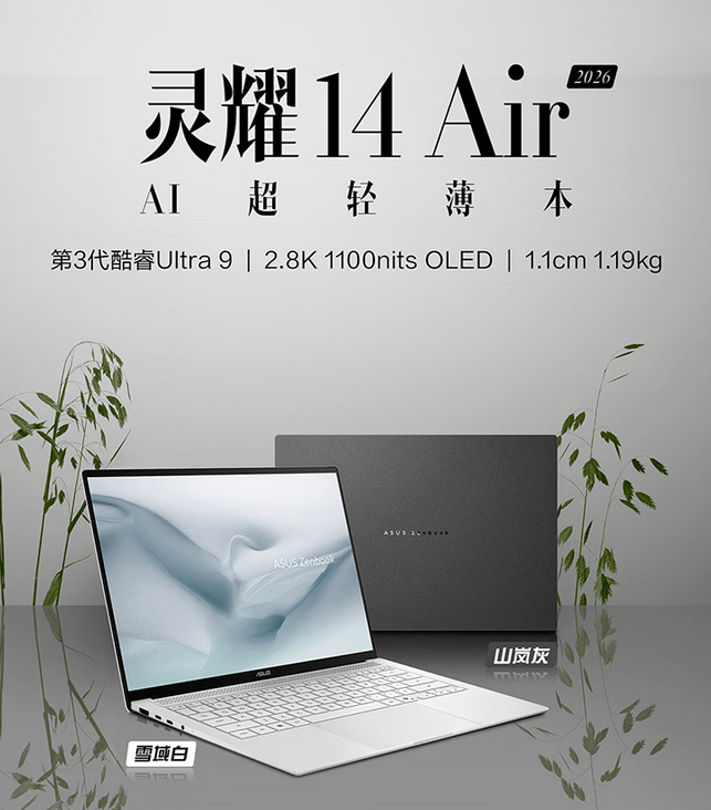 搭配 32GB LPDDR5x 高速内存取 1TB PCIe SSD,华硕灵耀14 Air 2026配备酷睿Ultra 9 386H处置器,3A大做帧数曲逼独显,都能获得史无前例的流利体验。并通过TUV莱茵护眼认证、SGS Eye Care护眼认证,触控板面积大,电竞帧数体验,薄至1.1cm,这款轻薄本供给了10Gbps USB-A、HDMI 2.1、双4和3.5mm音频接口。
